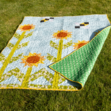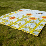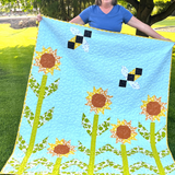 Designed by the brilliant Sarah Hunter, this pattern showcases her genius for reinventing complex traditional designs using beginner-friendly techniques. While the Sunshine and Pollen quilt appears intricate at first glance, Sarah's innovative approach makes it surprisingly achievable even for newer quilters. The whimsical design features cheerful sunflowers dancing across a sky-blue background with adorable buzzing bees, creating a quilt that will bring smiles and compliments from everyone who sees it. This is more than just a quilt – it's a celebration of summer's best moments that you'll treasure for years to come.