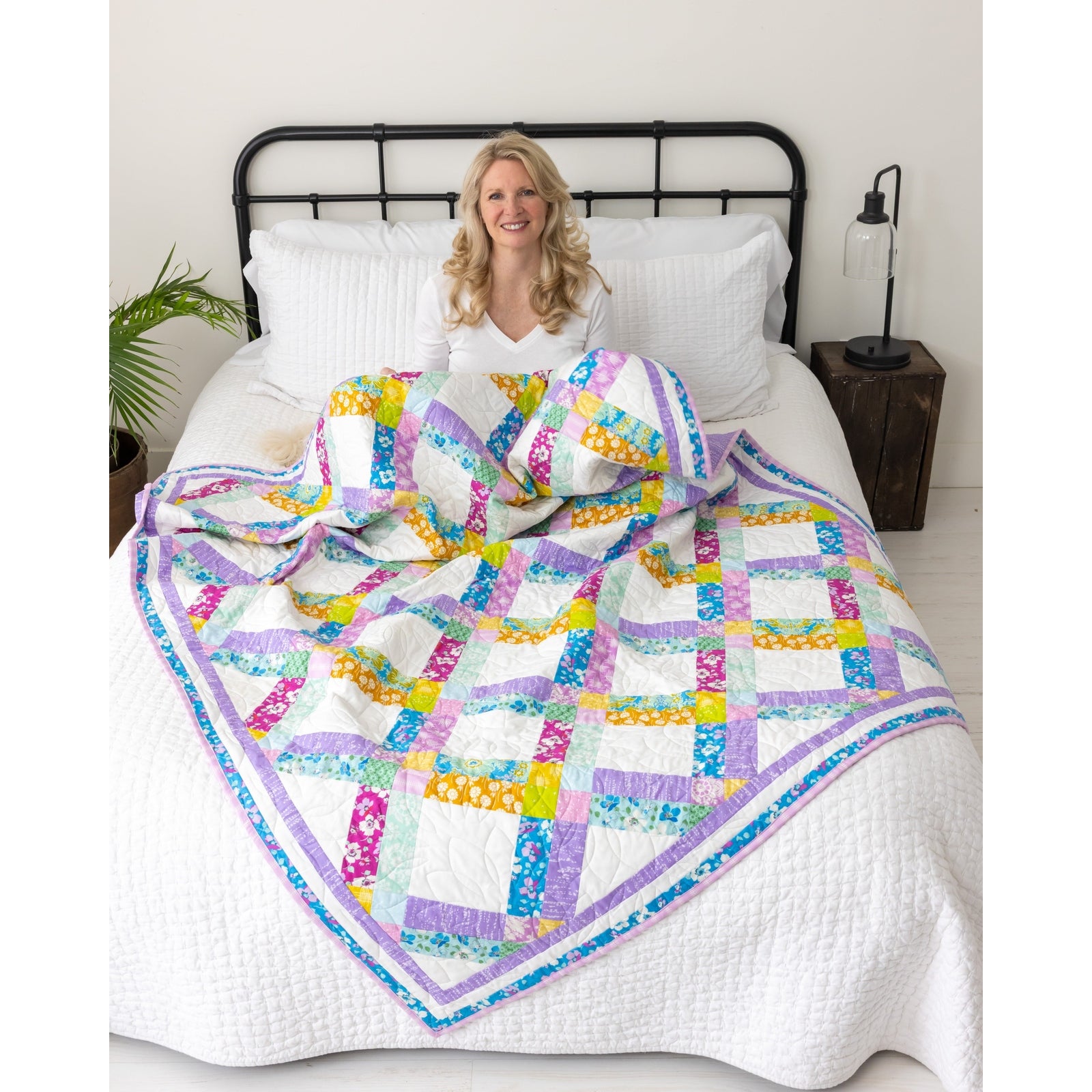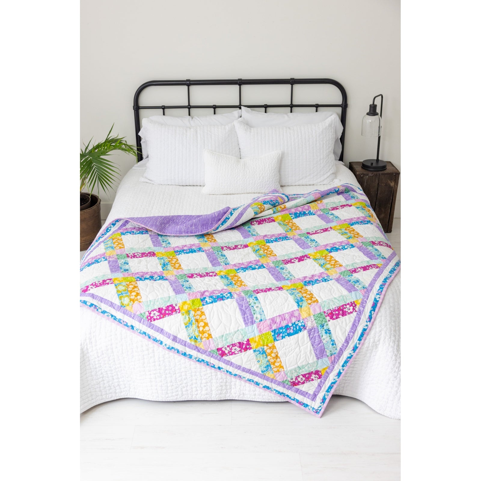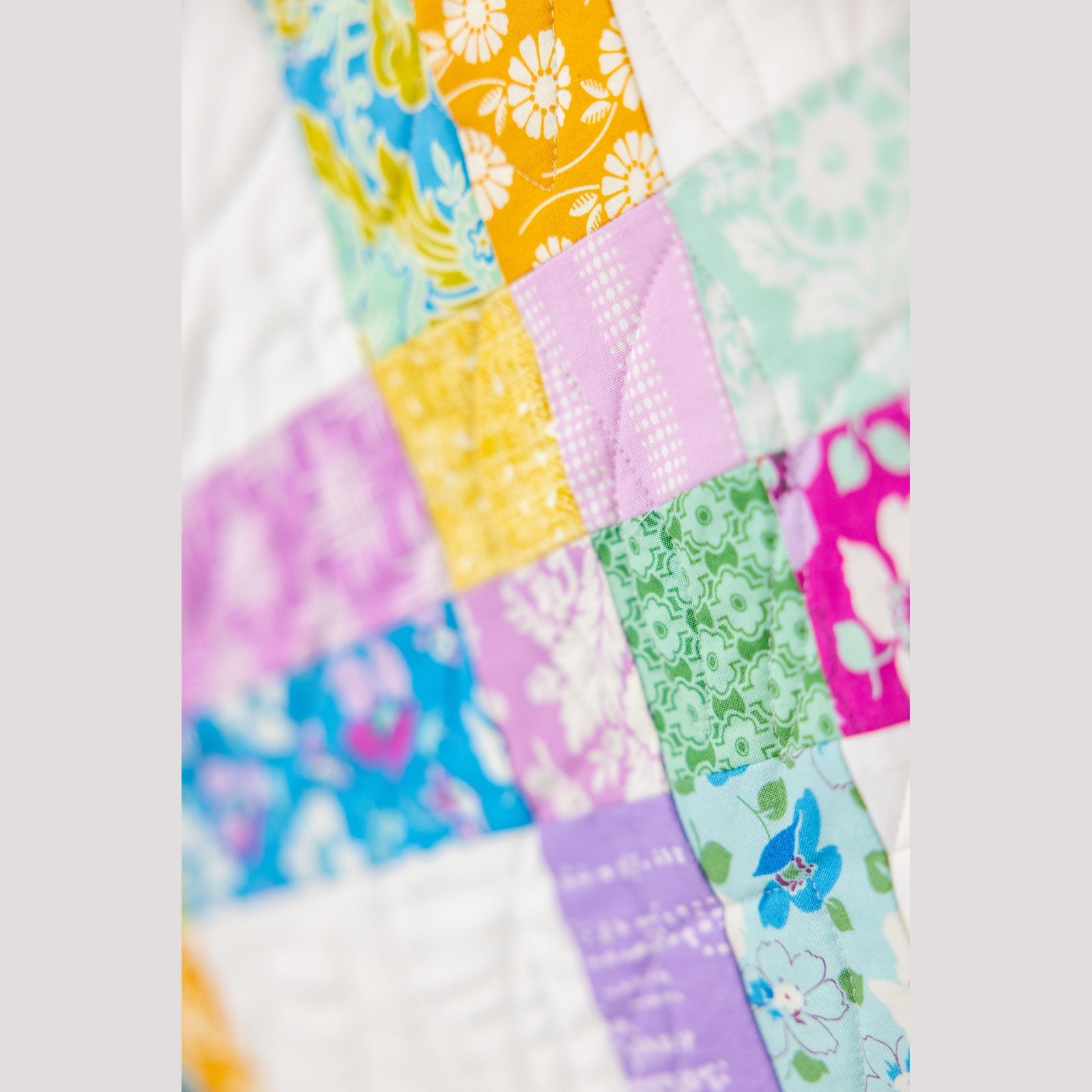 The First Bloom Quilting Kit features seventeen hand-selected fabrics that create that beautiful scrappy look we all love, without the hassle of coordinating so many different colors! This stunning uneven nine-patch design blooms with vibrant colors and creates a breathtaking diagonal lattice pattern. Whether you're a new quilter or an experienced one, this captivating quilt will attract the admiration of all who see your handiwork.