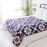 This traditional chain quilt design features the symbolic Sawtooth Star block, combining patriotic spirit with timeless quilting artistry.